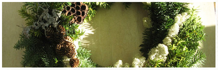 Außerdem stellen wir Adventsschmuck her u.a. unsere heiß begehrten Lichterstäuße, Gestecke, Türkränze und natürlich auch den herkömmlichen beliebten Adventskranz, den wir dann (auch gern auf Bestellung) bis zum 1. Advent von Hand mit hochwertigen Kerzen fertigen.