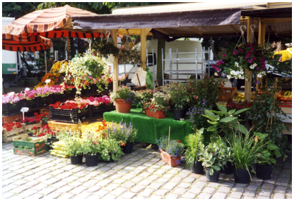 Dort verkaufen wir Gemüse, Obst und halten auch dort eine große Blumenauswahl für Sie bereit.